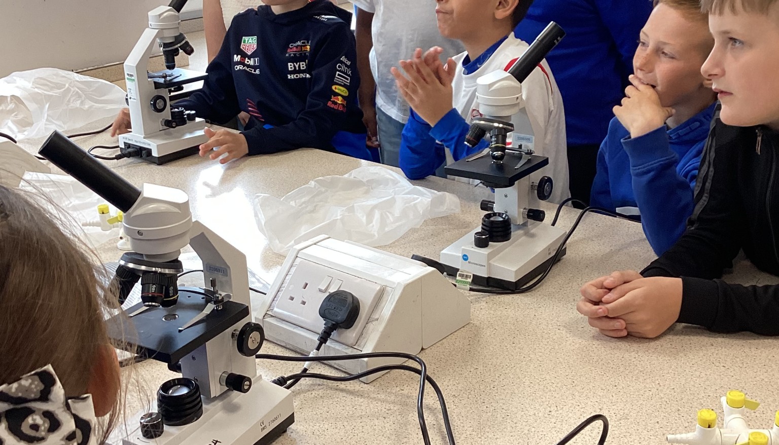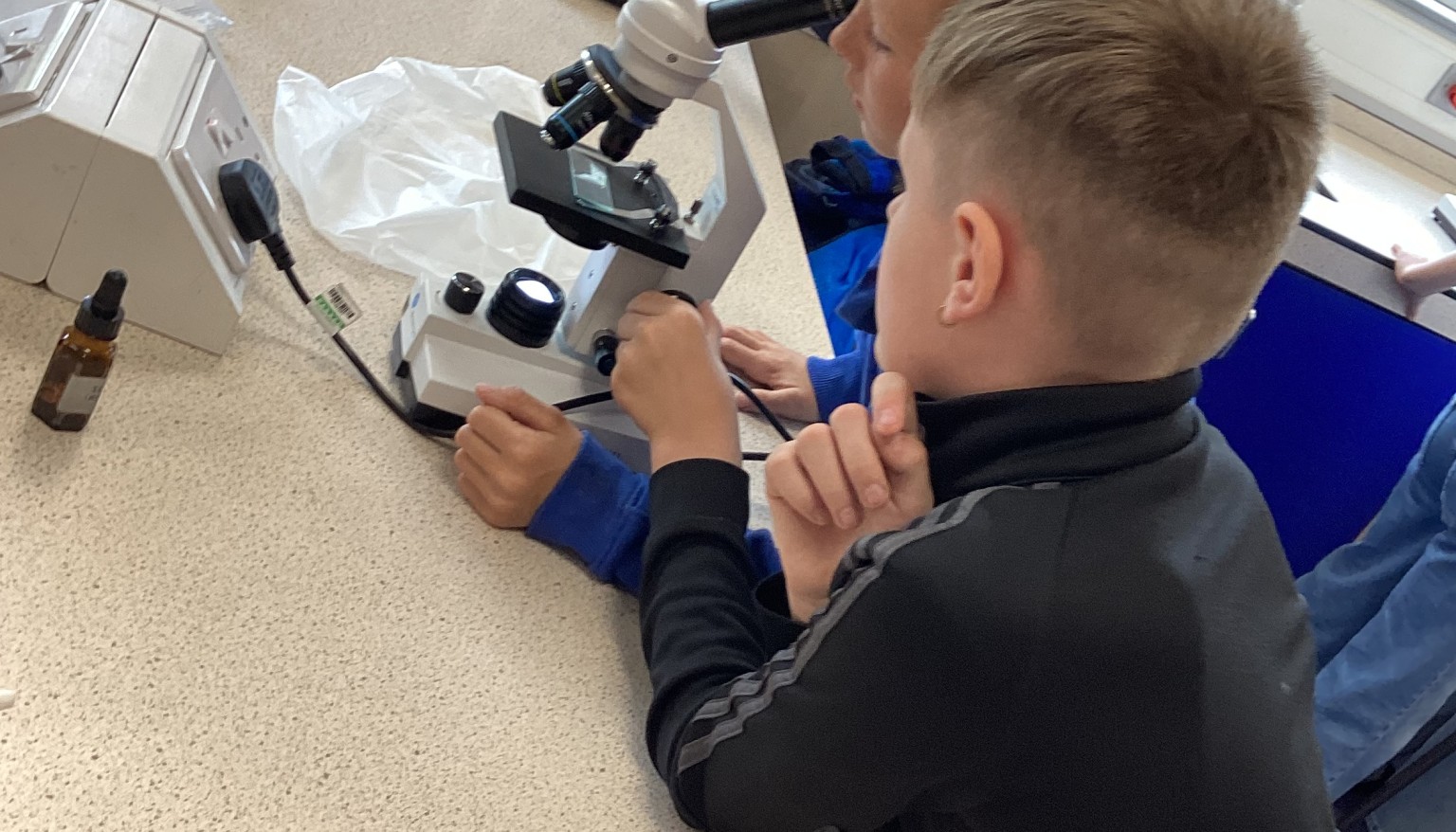 This afternoon, Year 5 visited Lord Lawson to take part in a science lesson. It was very exciting seeing the secondary school and all of the equipment the children get to use in their lessons. The children learned how to use a microscope to examine the cells in an onion. They had to carefully place the onion skin on a slide and then use iodine to ensure the cells could be seen under the microscope. It was fascinating to see what they looked like close up! They also got to examine other cell specimens using the microscope.Â